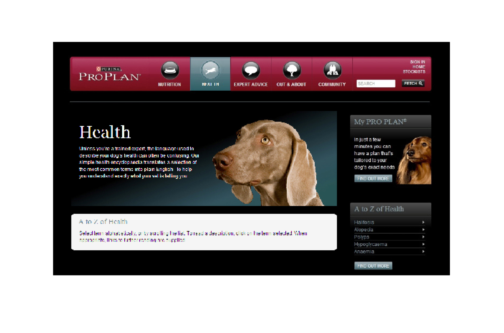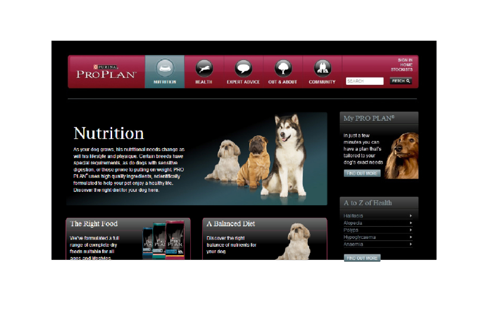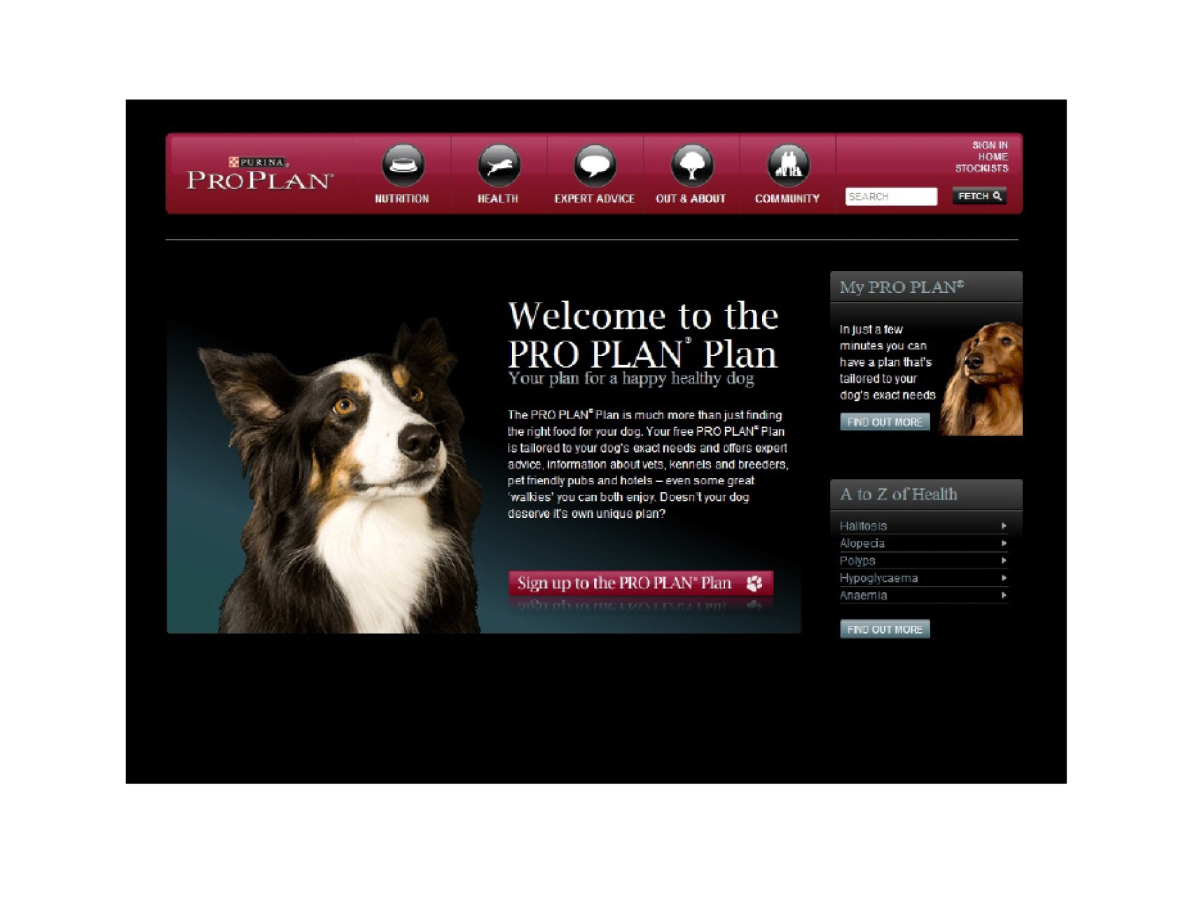 For all you dog lovers – Purina’s range of balanced nutrition. We came up with the ‘ProPlan Plan’ a specific diet and lifestyle tips that could be specifically tailored to keep every dog happy and healthy. At the heart of the ProPlan Plan was an owners website where they could share tips, stories – even their favourite ‘walkies’.